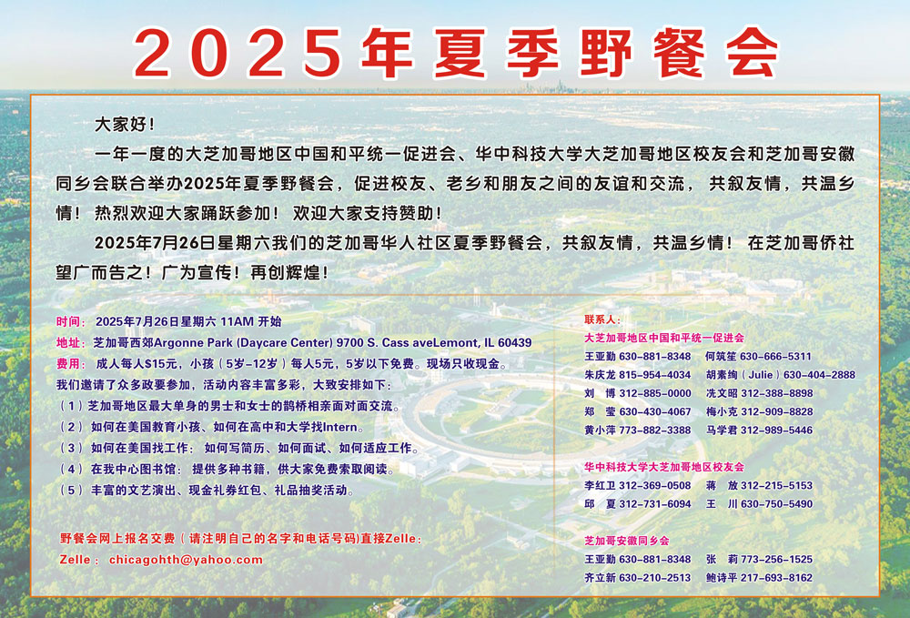 ☆ 2025年10月18日星期六 ☆ 芝加哥和统会将举办2025年全球两岸关系高峰论坛暨全美中国和平统一促进会联合会年会