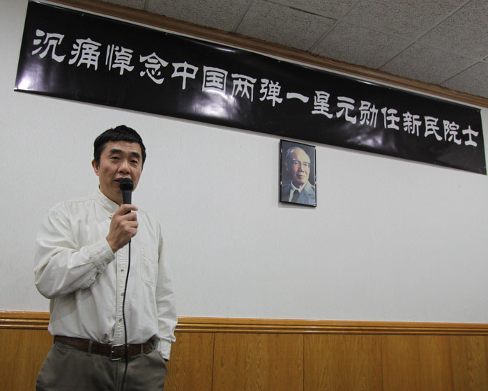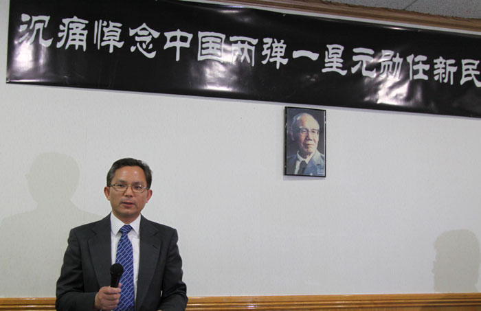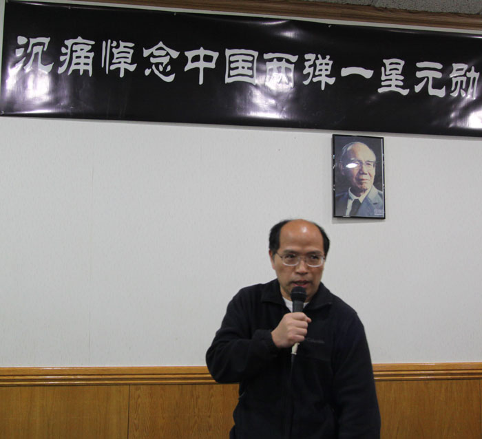今天我代表东南大学芝加哥地区校友会,怀着沉重的心情缅怀著名导弹和火箭技术专家,二弹一星功勋奖章获得者,中国航天事业的开拓者和奠基者之一,任新民院士。