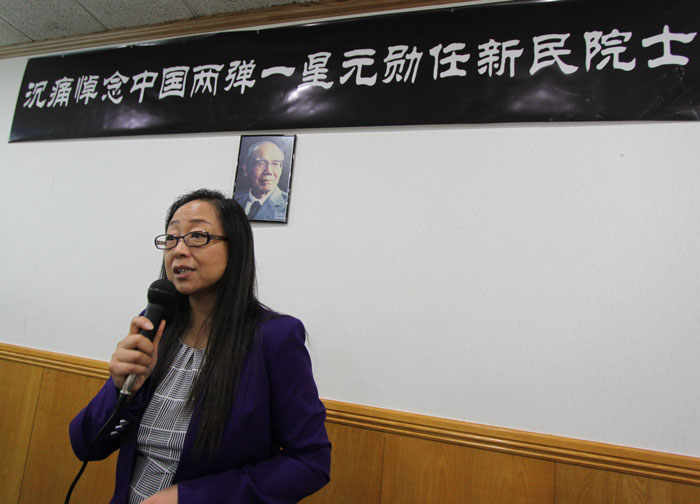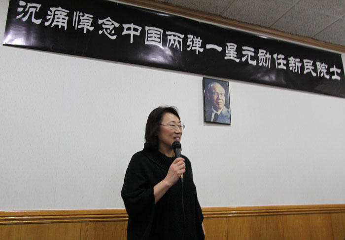 北京大学芝加哥校友会前会长姜晓莉博士发言,我是王亚勤的好朋友,我们当年也是学业优秀的佼佼者,在任老先生的高度,面对任老,很是惭愧。他为了中华民族付出,我们安逸于自己的小日子,他们在大西北献了自己,他们的工作环境如此恶劣,生命置之度外,没有他们,我们不可能在这里直起腰来,我们今天作为受益者,对任老非常感激!对任老的逝世,深表哀悼!