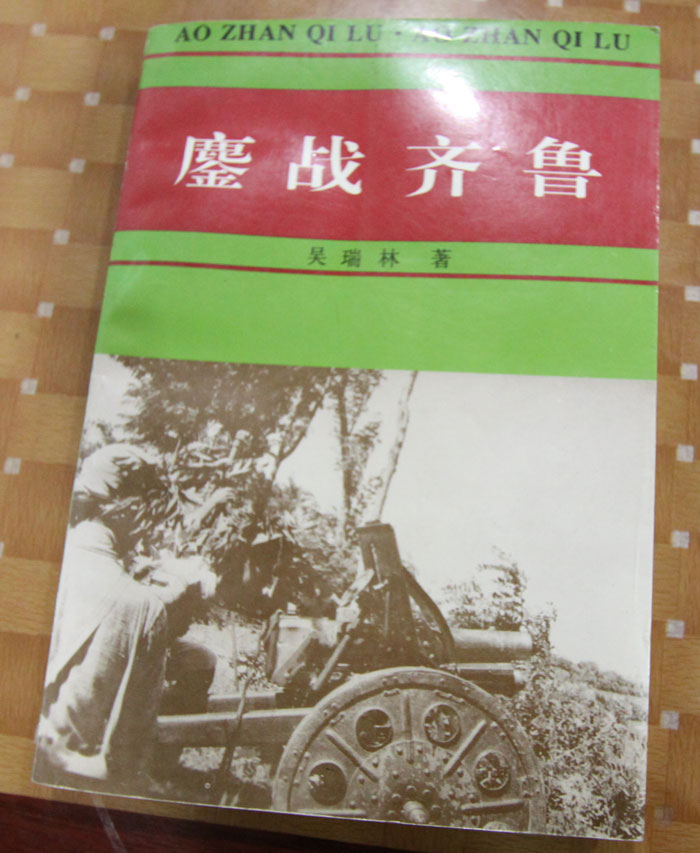 吴海波女士把她父亲的著作《鏖战齐鲁》赠送给我们。这本书描述了吴瑞林中将和广大指战员,坚决贯彻毛泽东主席军事思想的基本原则和一整套战略战术、中共中央和中央军委、八路军总部和中共中央山东分局、山东纵队和山东军区的正确决策与部署,广大人民群众的全力支持和全体指战员的顽强奋斗和英勇善战,在山东抗日战争中取得了胜利!