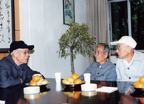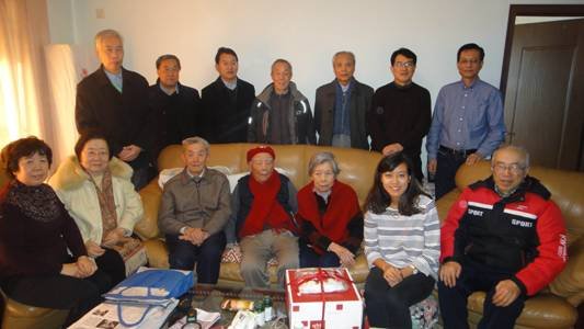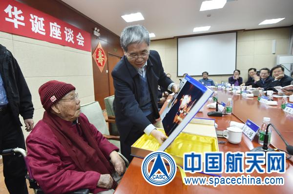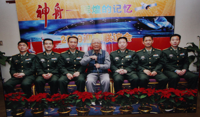 中国两弹一星元勋任新民院士与中国航天员们合影