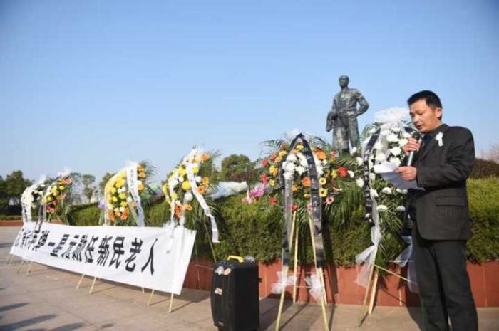 仪式上,任老的晚辈仇云青讲述了任老生平的一些往事,任老的家属代表彭道明致答谢词。现场市民后献上鲜花以哀悼任新民老人。