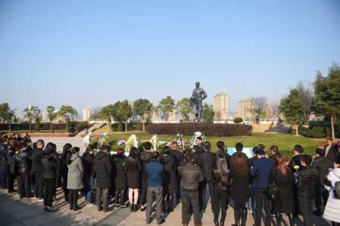 2017年2月15日上午9时,宁国市春晖公益联合会、西津蓝精灵安保队、凤形成峰幼儿园、小红帽志愿者等组织和自发而来的市民来到宁国市区任新民广场上的任新民先生铜像处,举行简短庄重的悼念仪式。