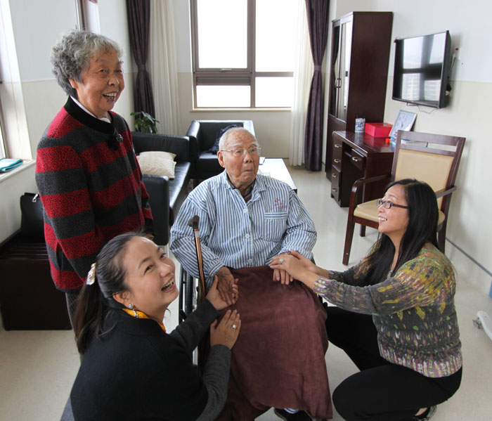 原中国人民解放军海军常务副司令员吴瑞林中将的女儿吴海波女士(右二)、丈夫罗昶(左一)