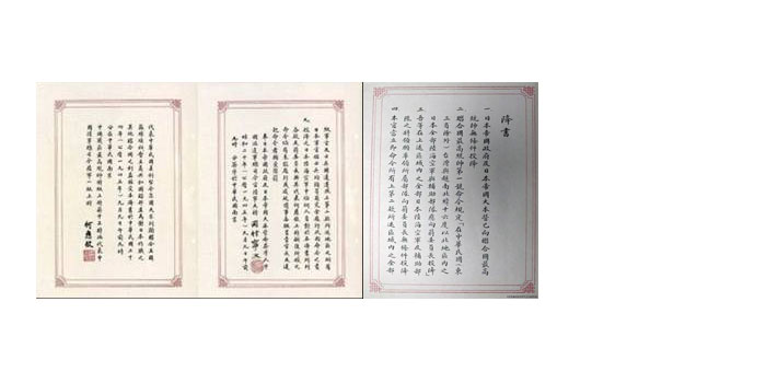 194692日,日本军政代表签署投降书 ,“余等兹为天皇、日本国政府、及其继续者,承约切实履行波茨坦宣言之条款”。