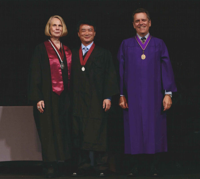 唐军建校友 (J.J. Tang, FAIA) 被授予美国建筑师学院院士仪式暨时与建筑师学院主席Tom Vonier, FAIA 及院士院院长Lenore Lucey, FAIA合影