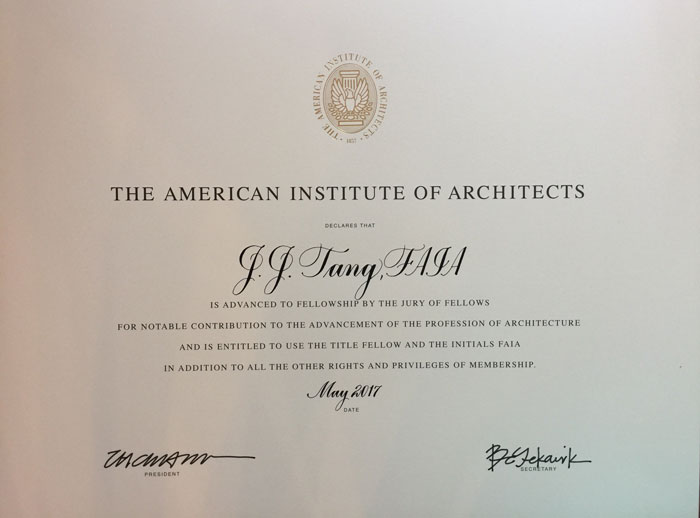 华中科技大学85级建筑学院校友唐军建 (J.J. Tang, FAIA)荣获美国建筑师学院院士称号